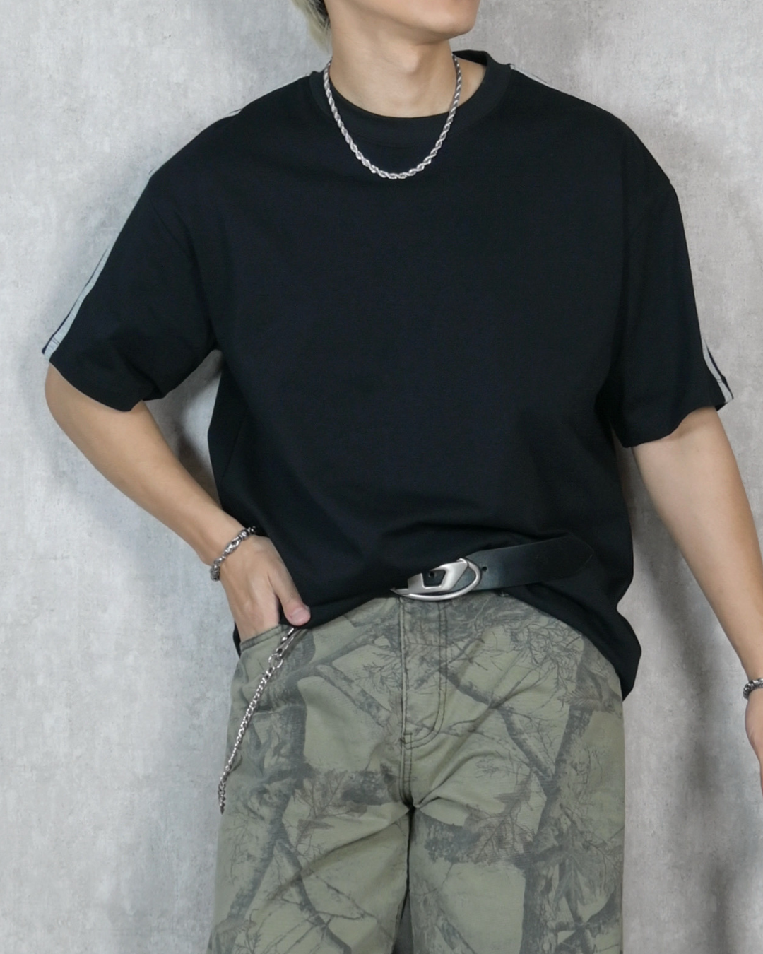 【拼接條紋設計,簡約厚磅T】021