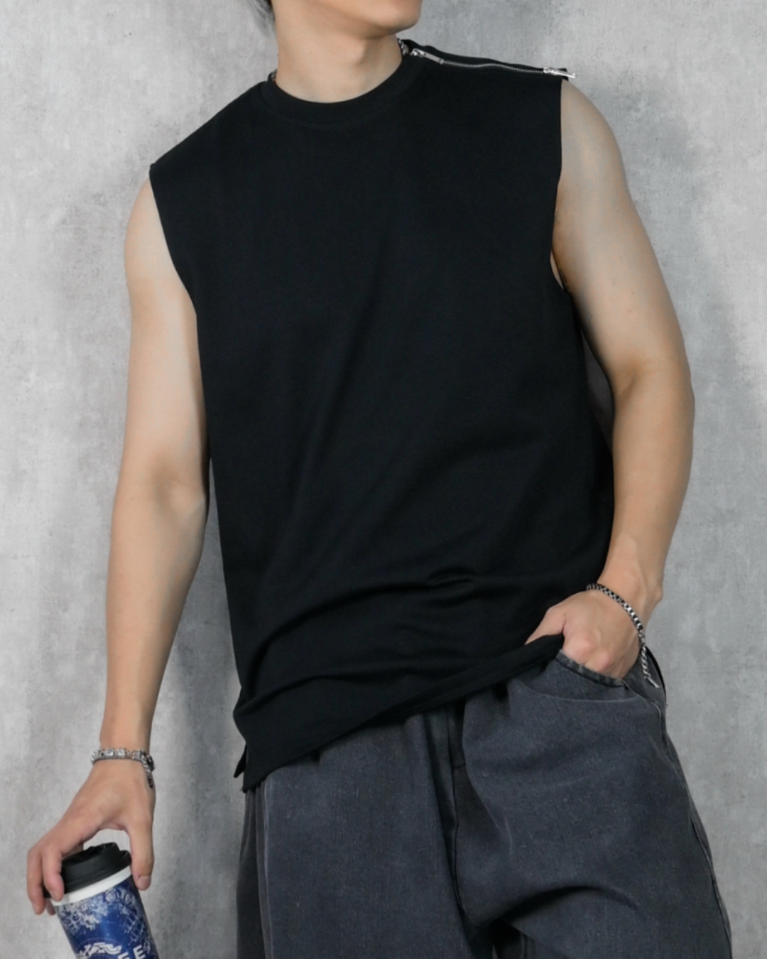 【可調動式拉鍊,寬肩背心】042