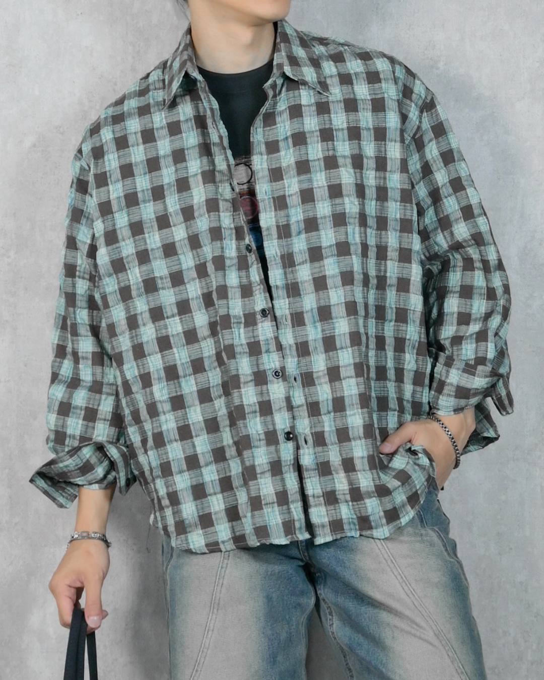 【立體泡泡紗,文藝清爽襯衫】055