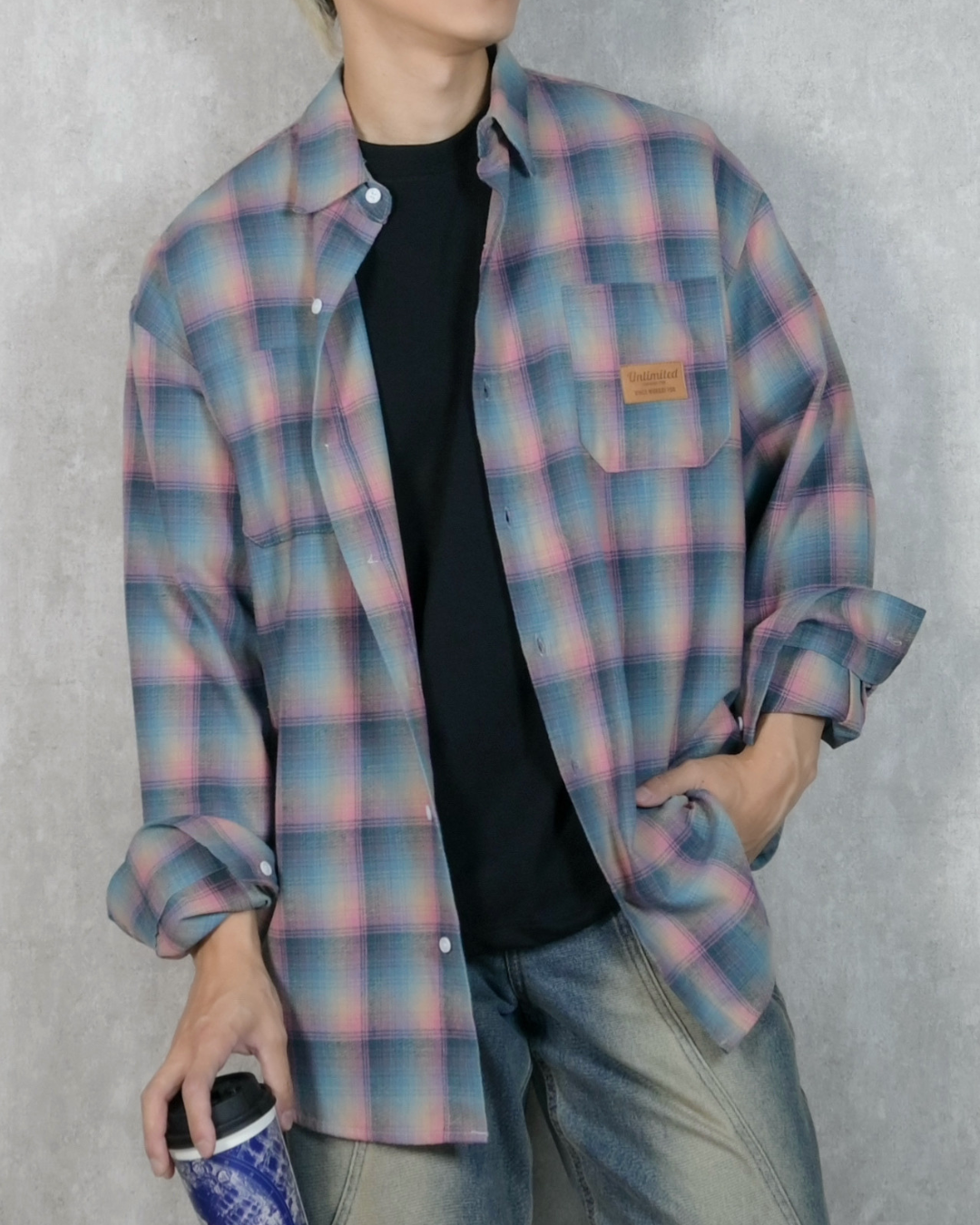【個性休閒風,糖果色格襯衫】057