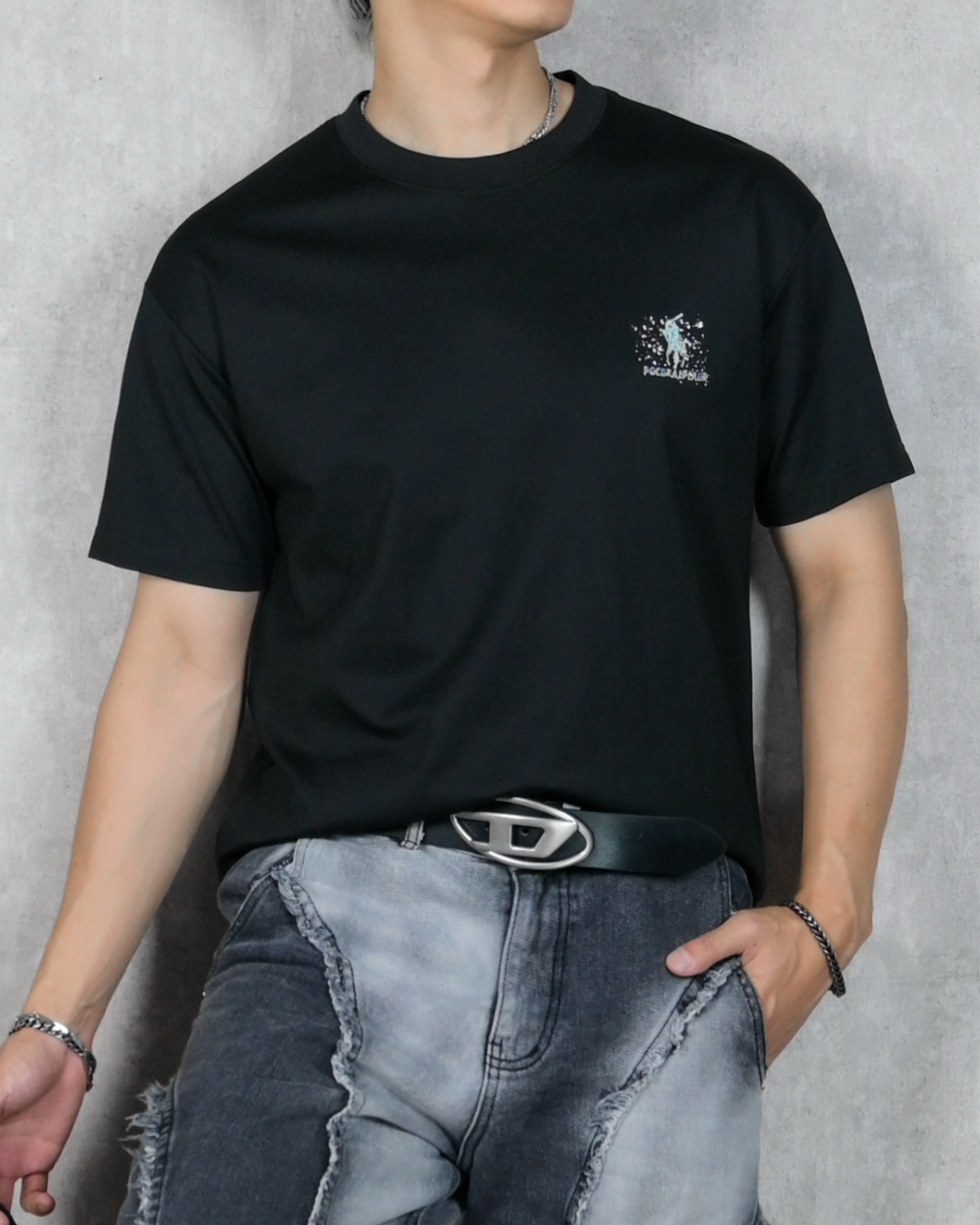 【潑墨馬球刺繡,百搭親膚T】078