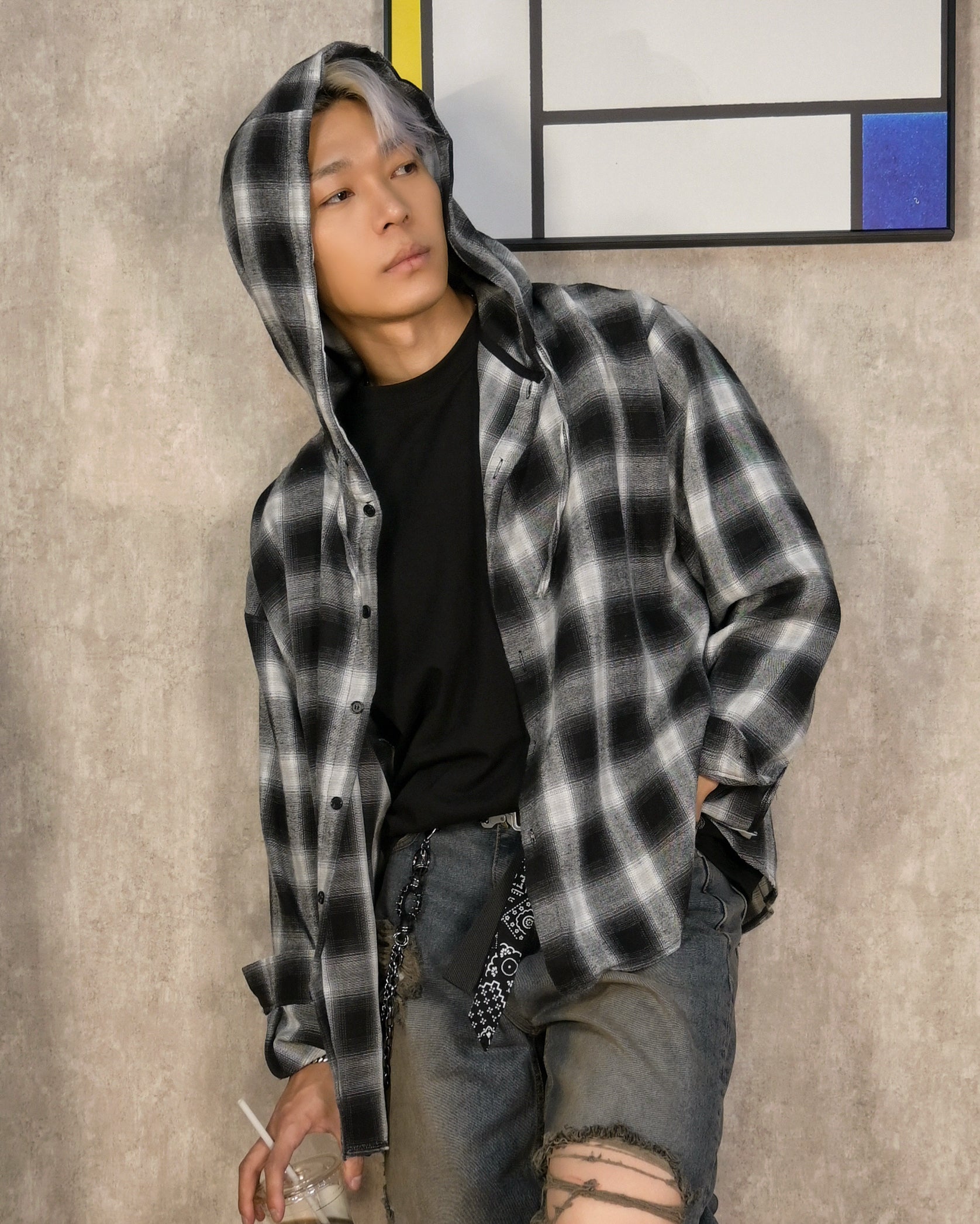 【韓系偶像款,連帽格紋襯衫】【預購】185