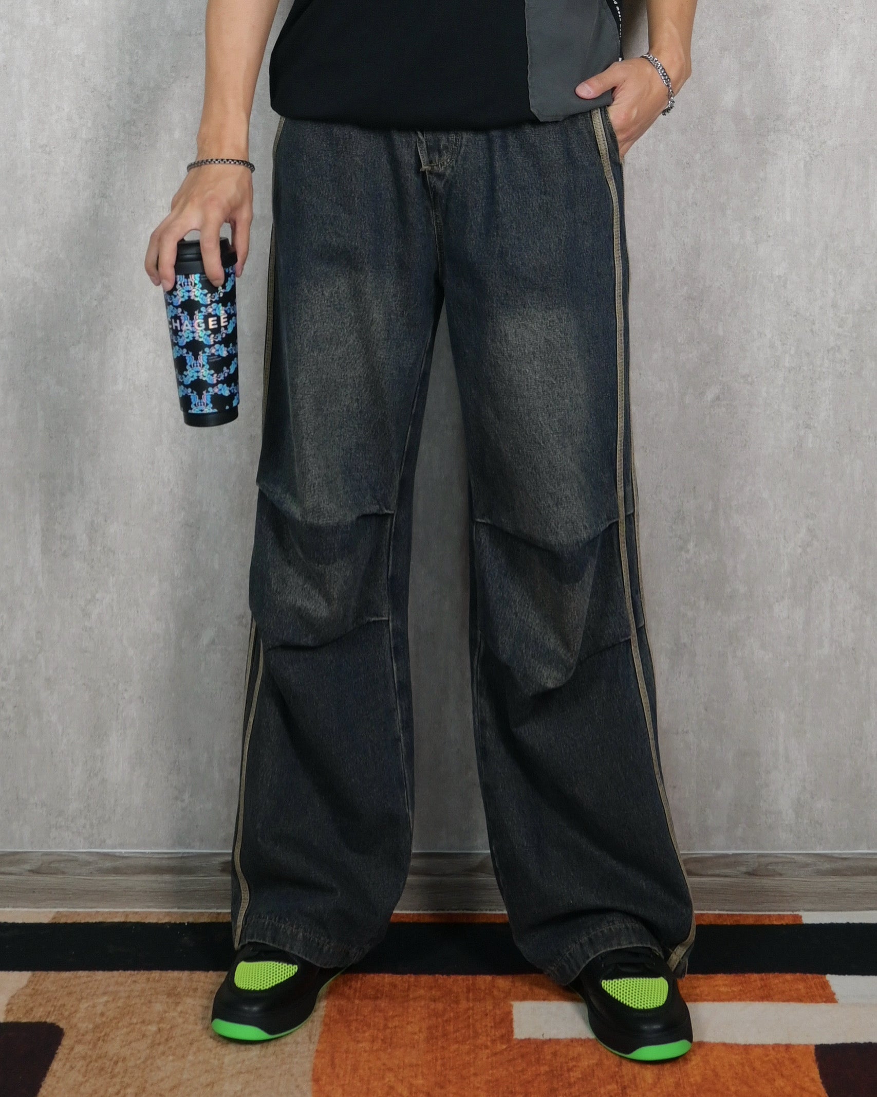 【工裝褶皺設計,韓系闊腿褲】【預購】002P