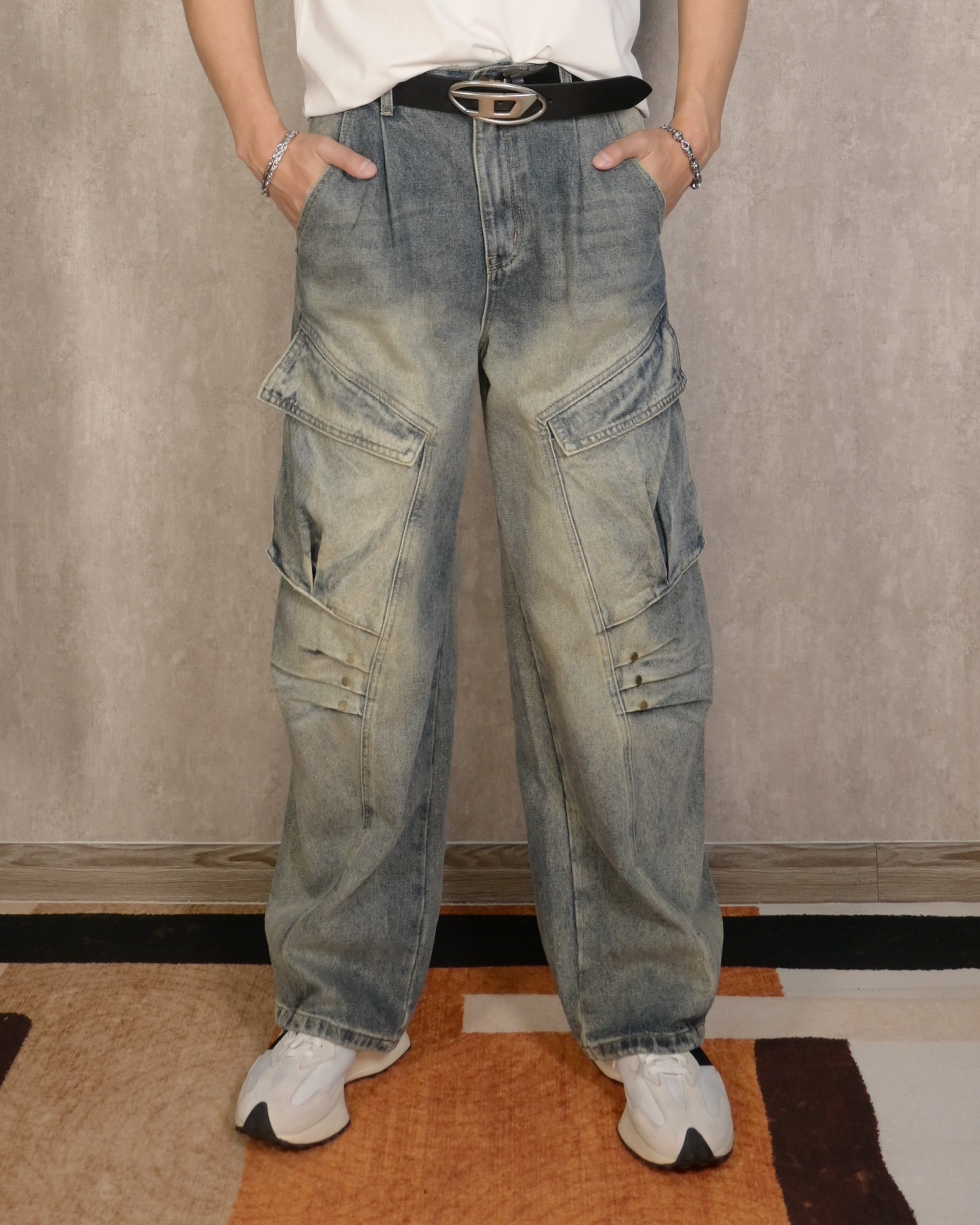 【鉚釘打褶工藝,韓系闊腿褲】101P