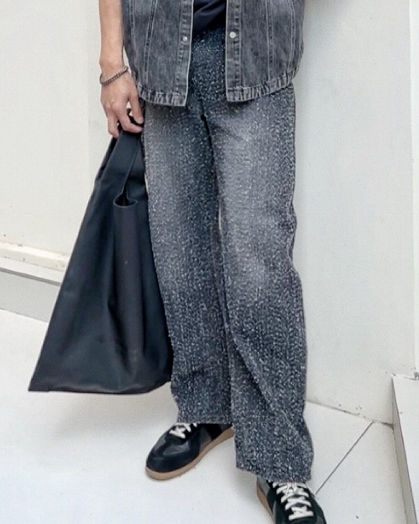 【水洗雪花顆粒,韓系直筒褲】【預購】194P