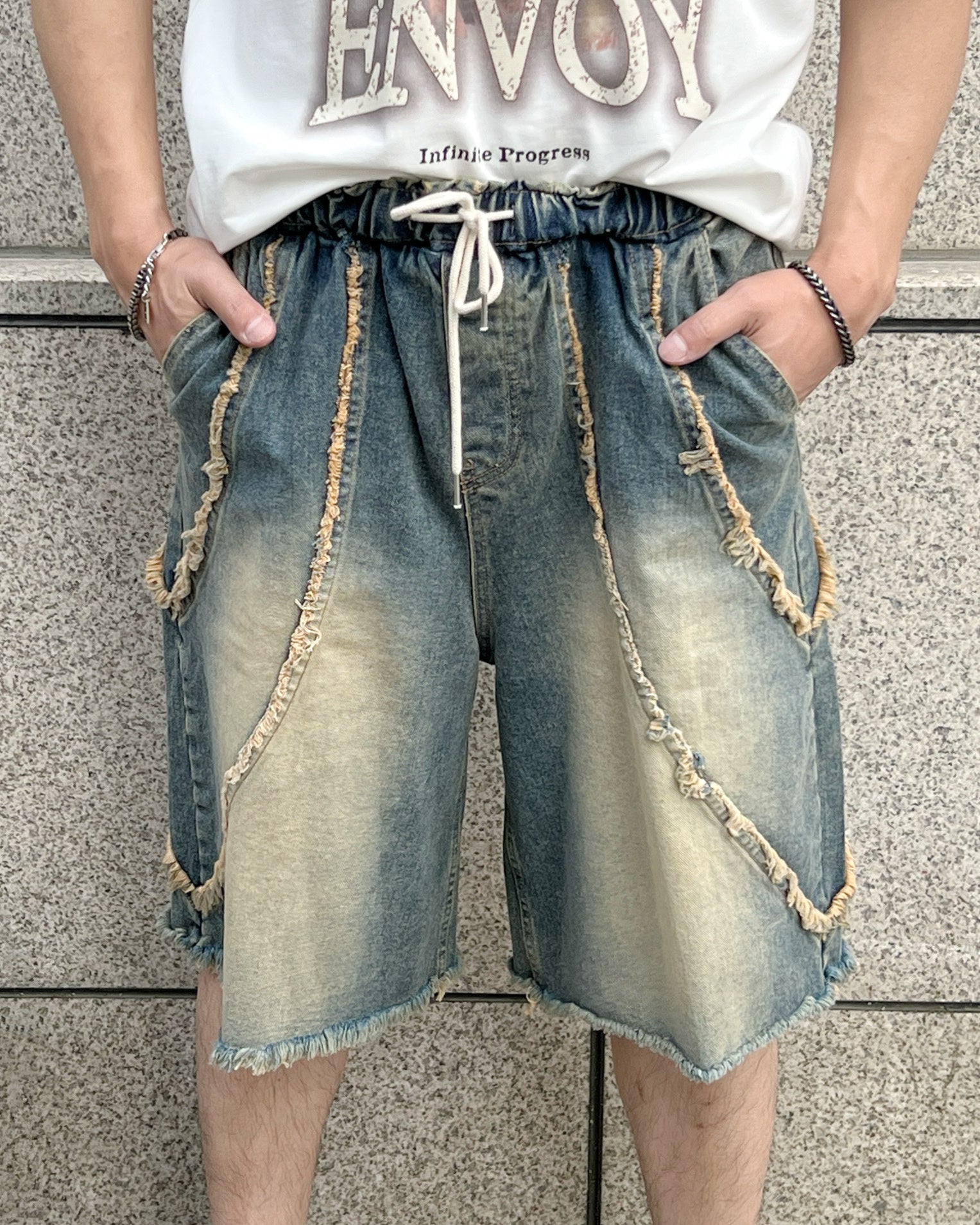 【韓系金邊流蘇毛,牛仔短褲】【預購】206P